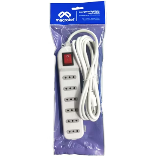 Alargador electrico 3mts. switch y 5P